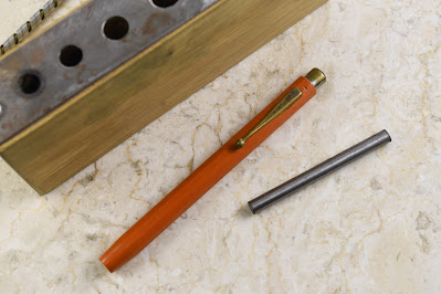 The lowly Wearever brand, produced by David Kahn, Inc., doesn't get as much love as it should. Kahn was a real visionary in writing instruments who found ways to make pens and pencils that mimicked the look of higher priced brands, but more cheaply and efficiently. They remain plentiful today, and since it takes a lot to knock one of these out of commission, the fact that almost all of them still work today means that there hasn't really been much call for me to dive into repairing one.
